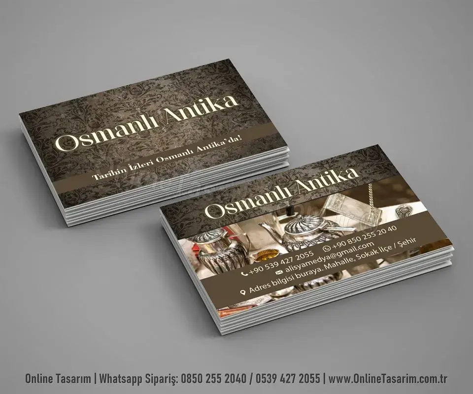Antika sektöründe güven kazanmak, müşteri kitlenizi büyütmek ve profesyonel bir duruş sergilemek için Online Tasarım’ın antikacı kartvizitleri tam size göre!