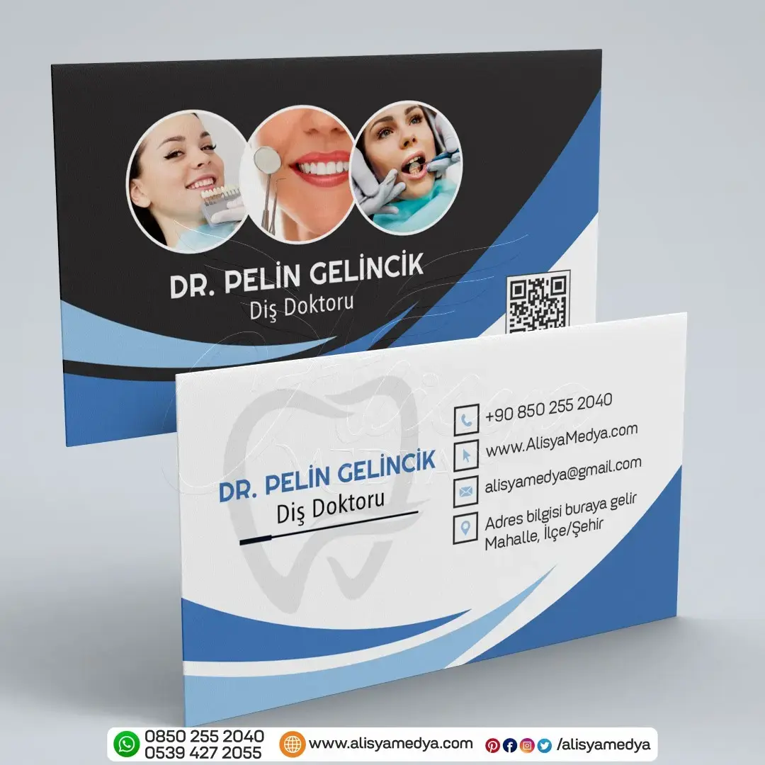 Online tasarım ve Online matbaa hizmetleri sunan Alisya Medya'nın tasarladığı bu diş doktoru sağlık-tıp kartvizit, mesleğinizin imajını güçlendirecek ve müşterileriniz üzerinde güvenilir, profesyonel bir ilk izlenim bırakacaktır. Diş Doktoru kartvizit baskı ve tasarım ihtiyaçlarınız için ideal bir seçenek olan bu ürün, aynı zamanda markanızın bilinirliğini artıracak ve akılda kalıcı olmanızı sağlayacaktır.
