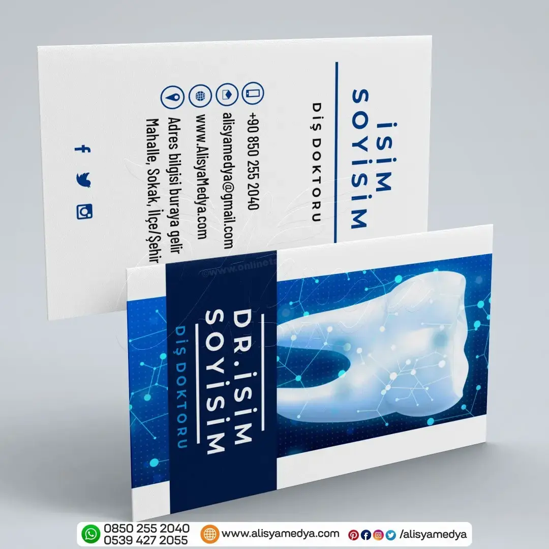 Online tasarım ve Online matbaa hizmetleri sunan Alisya Medya'nın tasarladığı bu diş doktoru sağlık-tıp kartvizit, mesleğinizin imajını güçlendirecek ve müşterileriniz üzerinde güvenilir, profesyonel bir ilk izlenim bırakacaktır. Diş Doktoru kartvizit baskı ve tasarım ihtiyaçlarınız için ideal bir seçenek olan bu ürün, aynı zamanda markanızın bilinirliğini artıracak ve akılda kalıcı olmanızı sağlayacaktır.