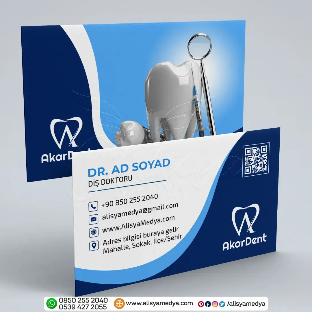 Online tasarım ve Online matbaa hizmetleri sunan Alisya Medya'nın tasarladığı bu diş doktoru sağlık-tıp kartvizit, mesleğinizin imajını güçlendirecek ve müşterileriniz üzerinde güvenilir, profesyonel bir ilk izlenim bırakacaktır. Diş Doktoru kartvizit baskı ve tasarım ihtiyaçlarınız için ideal bir seçenek olan bu ürün, aynı zamanda markanızın bilinirliğini artıracak ve akılda kalıcı olmanızı sağlayacaktır.