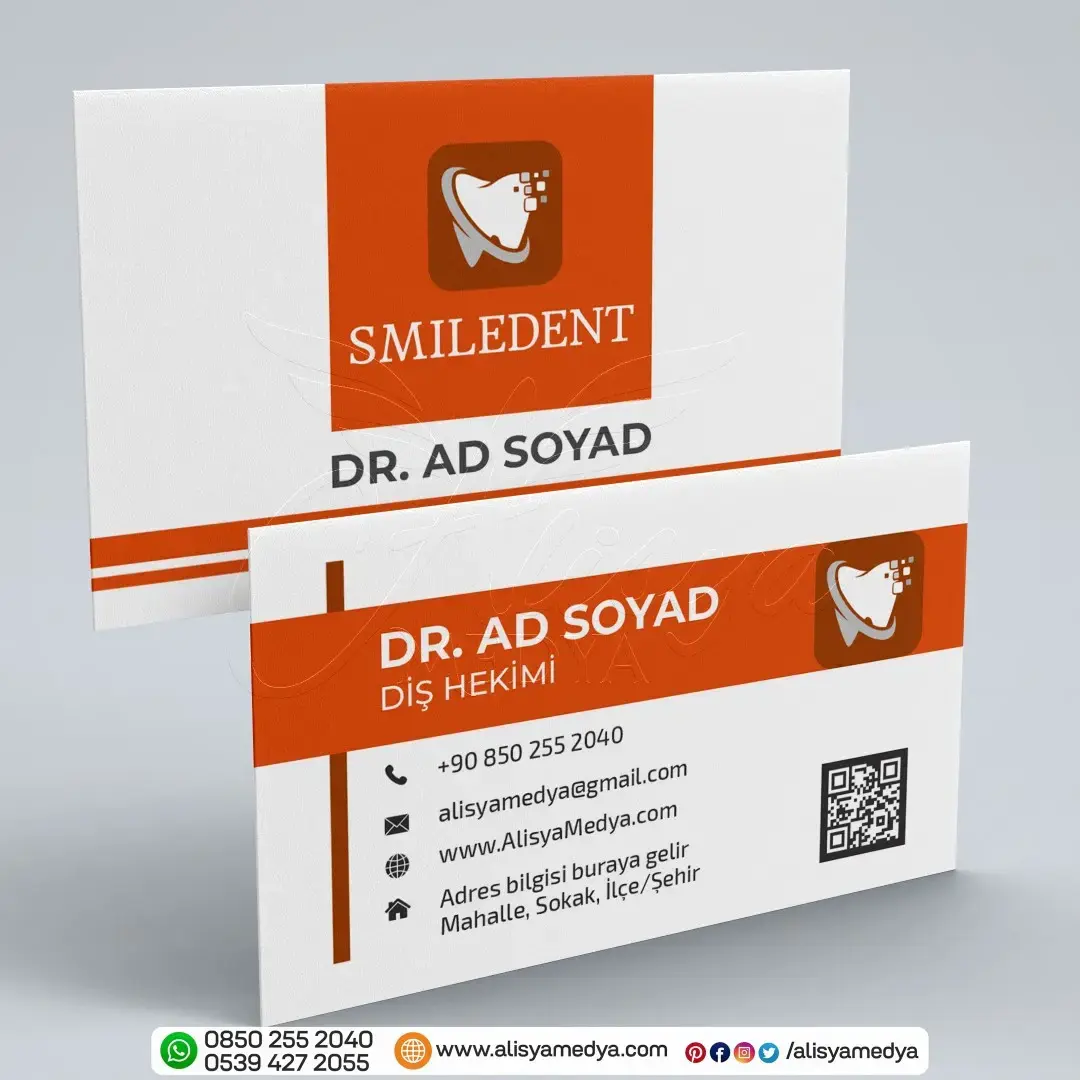 Online tasarım ve Online matbaa hizmetleri sunan Alisya Medya'nın tasarladığı bu diş doktoru sağlık-tıp kartvizit, mesleğinizin imajını güçlendirecek ve müşterileriniz üzerinde güvenilir, profesyonel bir ilk izlenim bırakacaktır. Diş Doktoru kartvizit baskı ve tasarım ihtiyaçlarınız için ideal bir seçenek olan bu ürün, aynı zamanda markanızın bilinirliğini artıracak ve akılda kalıcı olmanızı sağlayacaktır.