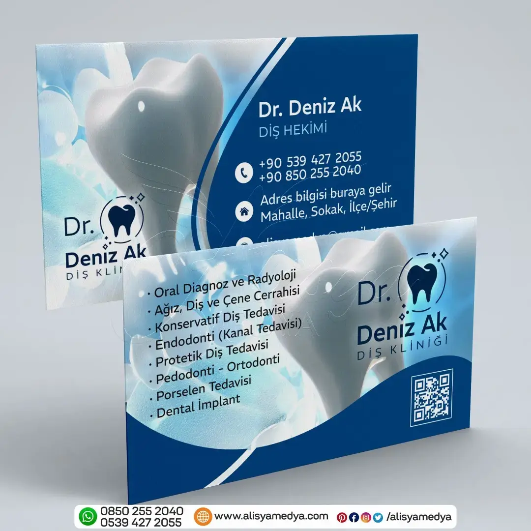 Online tasarım ve Online matbaa hizmetleri sunan Alisya Medya'nın tasarladığı bu diş doktoru sağlık-tıp kartvizit, mesleğinizin imajını güçlendirecek ve müşterileriniz üzerinde güvenilir, profesyonel bir ilk izlenim bırakacaktır. Diş Doktoru kartvizit baskı ve tasarım ihtiyaçlarınız için ideal bir seçenek olan bu ürün, aynı zamanda markanızın bilinirliğini artıracak ve akılda kalıcı olmanızı sağlayacaktır.