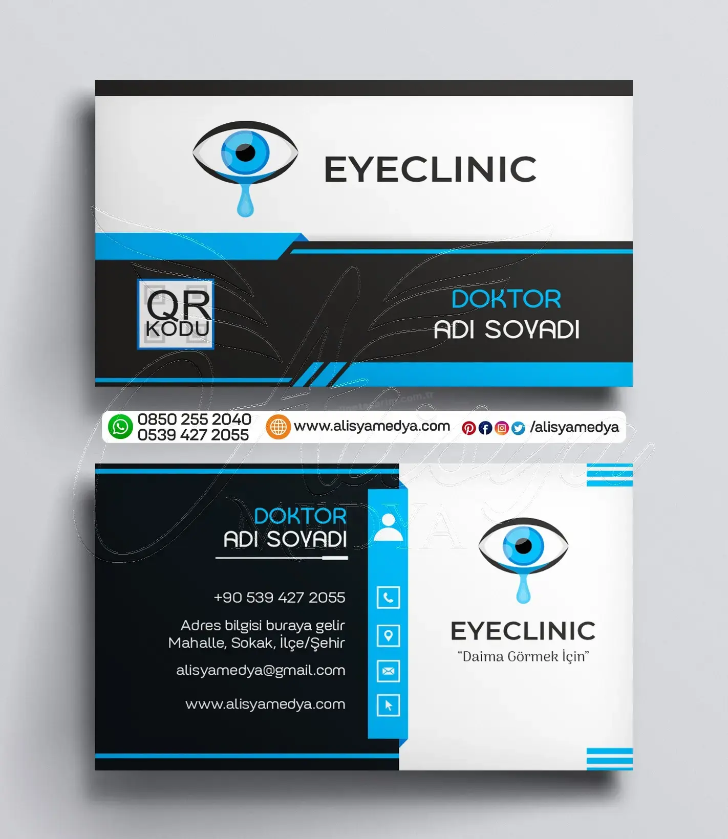 Mavi Renk Göz Kliniği, Göz Hastanesi, Göz Doktoru Kartvizit Tasarım Örneği - QR Kod Eklenebilir Model Alisya Medya'da! Hızlı Sipariş için İletişime Geçin.