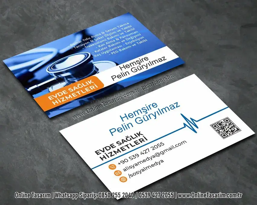 Online Tasarım olarak, hemşireler, evde sağlık hizmeti sunan uzmanlar, sağlık kabini işletenler ve tüm sağlık profesyonelleri için özel olarak hazırlanmış sağlık kartvizit baskı hizmeti sunuyoruz. Mesleki kimliğinizi en iyi şekilde yansıtan kartvizit tasarımlarını kolayca oluşturabilir, yüksek kaliteli baskı seçeneklerimizle hızlıca sipariş verebilirsiniz.