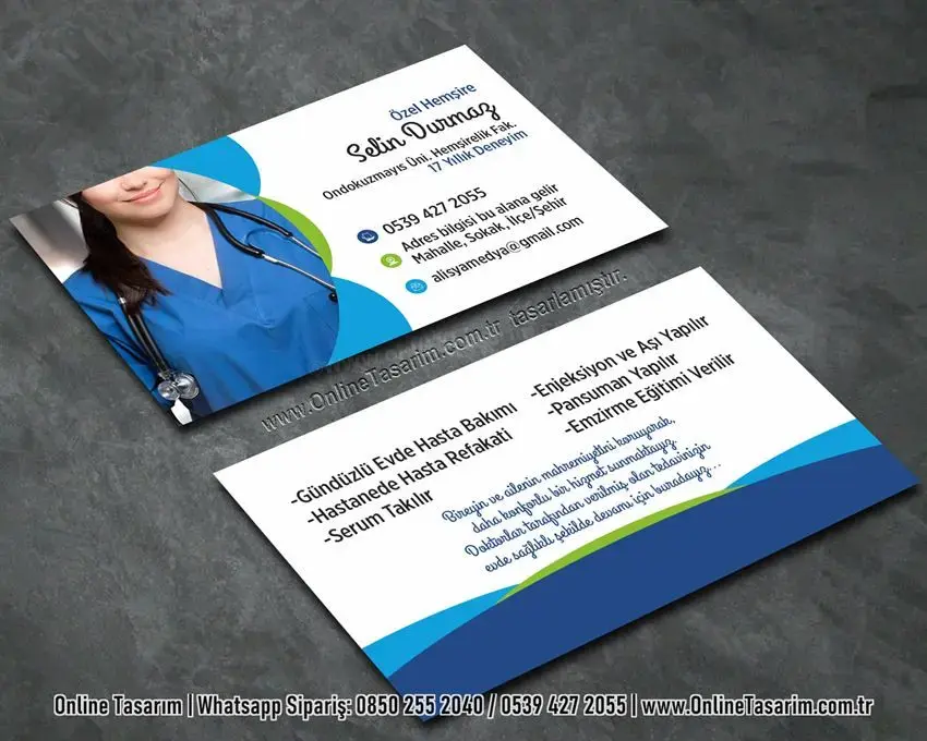 Unutmayın! Online Tasarım’da hemşire kartvizit ve sağlık kartvizit bastırmak artık çok kolay ve hızlı.