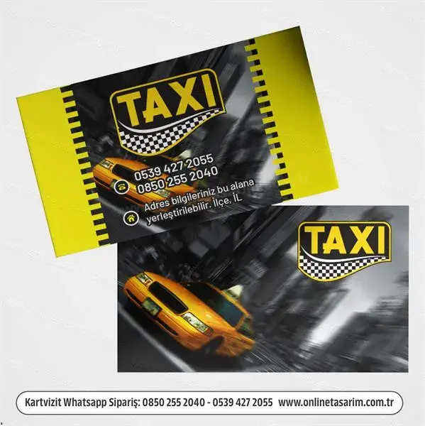 Online Tasarım olarak, taksi ve taksi durağı kartvizitlerinizi kolayca ve profesyonelce hazırlamanız için size özel tasarım hizmeti sunuyoruz. Online Tasarım platformumuz üzerinden, taksici kartvizitinizi istediğiniz gibi tasarlatabilir, kaliteli baskı seçeneklerimizle hemen bastırabilirsiniz.